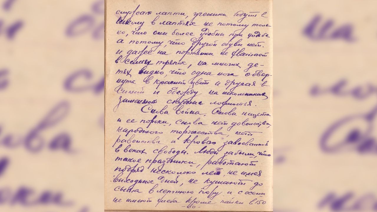 А так ли это протекает и что я вижу каждый день? Мальчики и девочки, подростки 13-14 лет за станком, на конвейере с подставкой под ногами, чтобы искусственно увеличить рост до рабочей площадки станка, плохо одетые, с деревянной подошвой матерчатых туфель, более чем полуголодные, не видят сахару, зелени, не досыта хлеба с постной похлебкой (позванной баландой), не имея мыла помыть руки и лицо после работы с минеральными маслами, металлической пылью и другой грязью, выполняют и перевыполняют норму труда взрослых рабочих, рассчитанную на десятичасовой рабочий день».